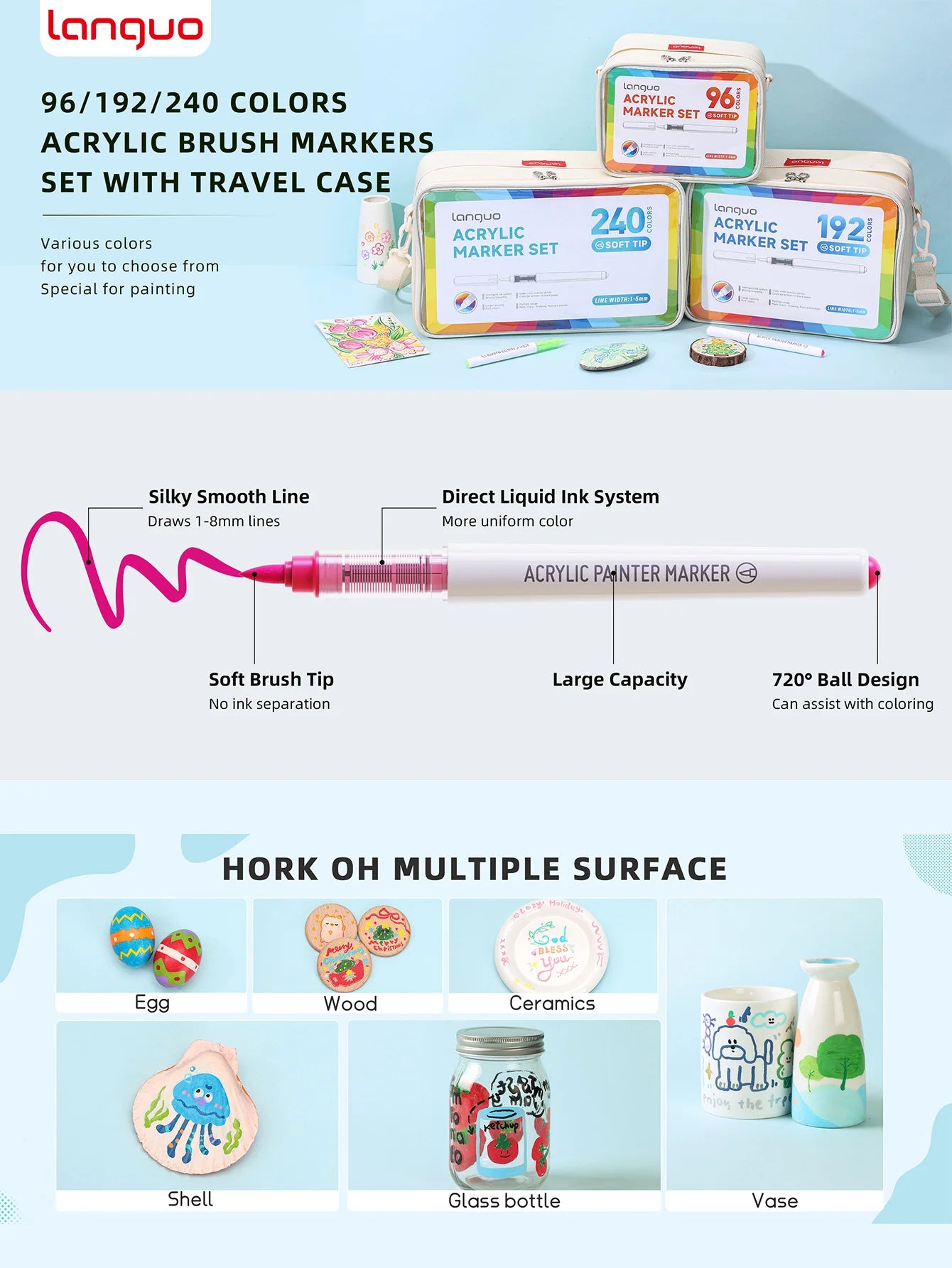 Inform when this item available Languo 9pcs Soft Brush Acrylic Marker Pen Set