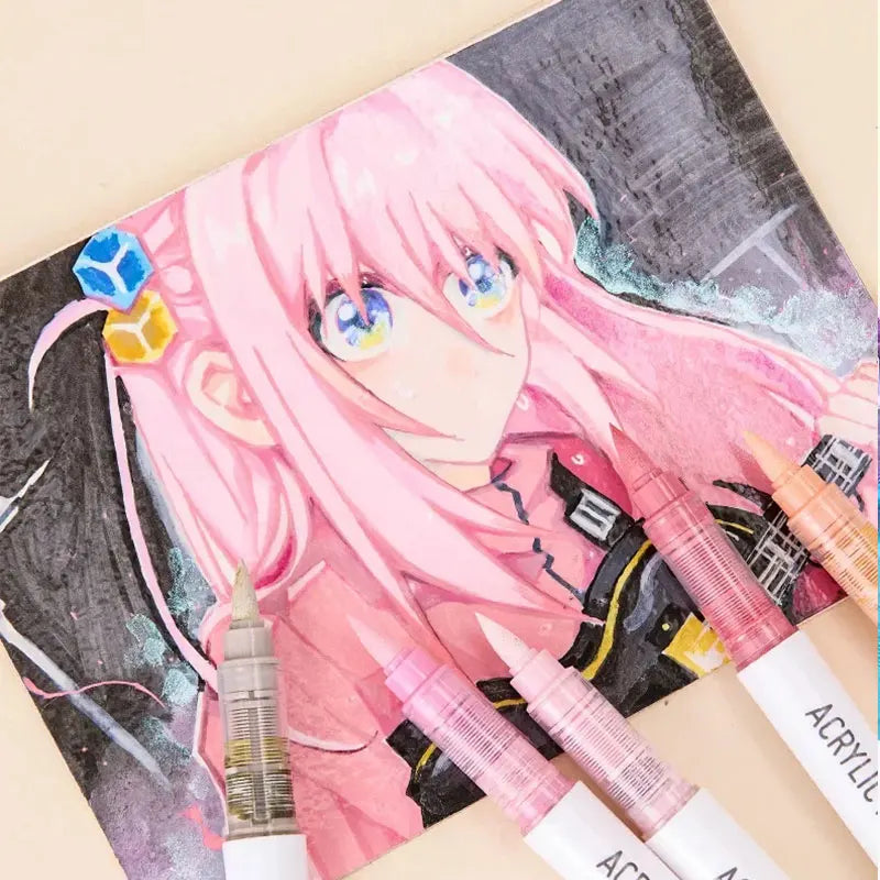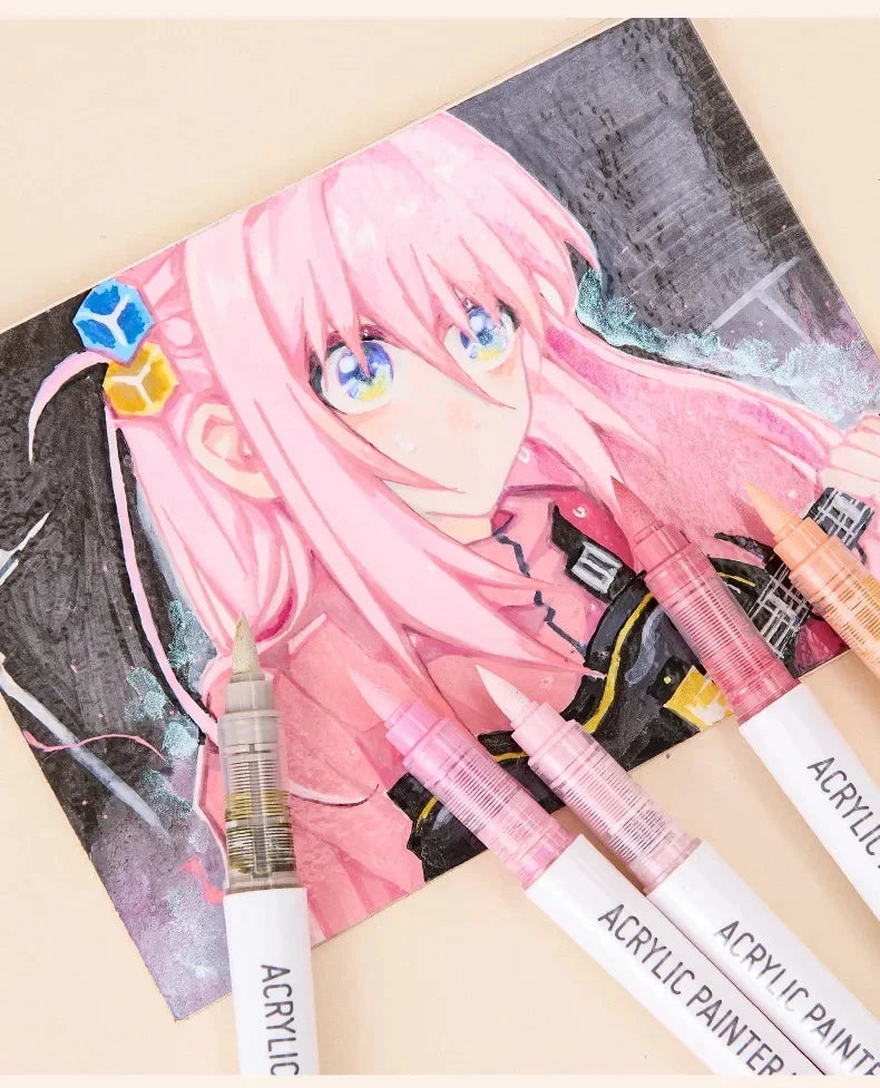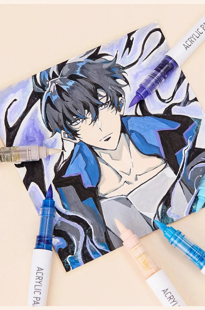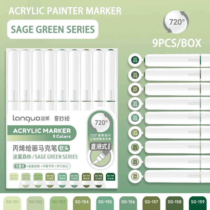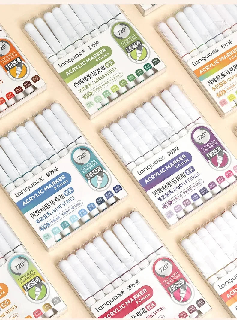 Set of 9 high-quality soft brush acrylic markers